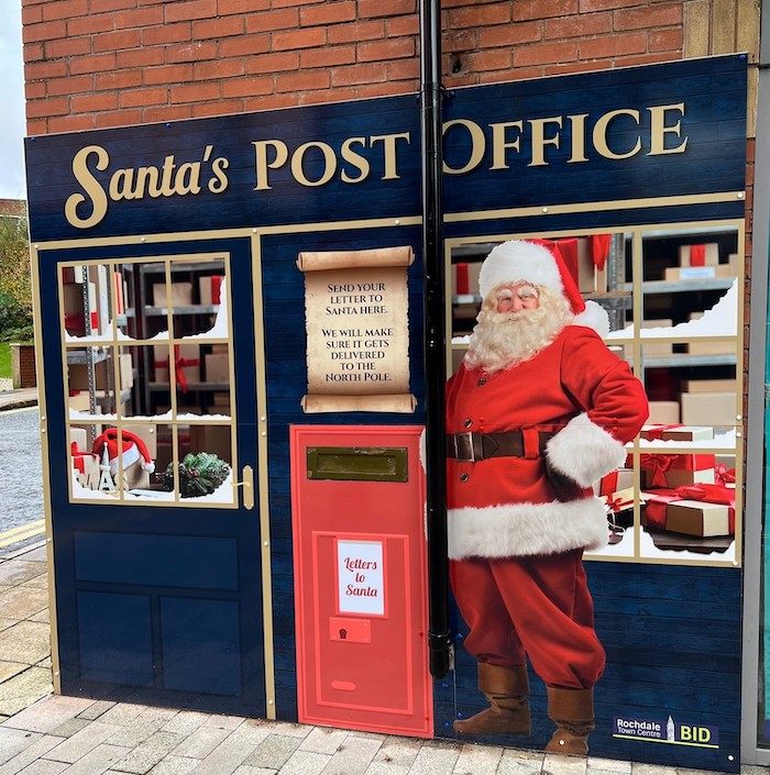A pop-up Christmas post box has arrived at Rochdale Riverside, organised by the elves in the North Pole and our friends at Rochdale Business Improvement District.